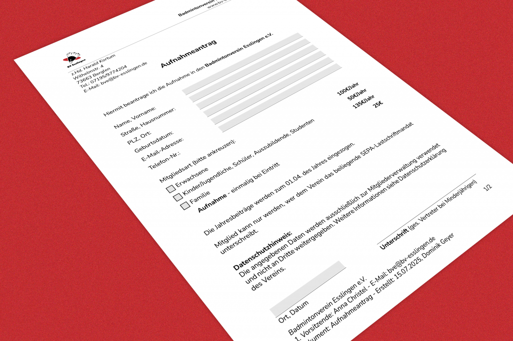 Du überlegst dir, Mitglied beim BV Esslingen zu werden? Bevor du dich festlegst, kannst du gerne ein paar Mal zum Probetraining kommen. Wenn du dich dann für eine Mitgliedschaft entschieden hast, kannst du den Aufnahmeantrag herunterladen, ausdrucken und ausgefüllt bei einem Trainer abgeben oder an die auf dem Formular angegebene Postadresse oder Email-Adresse schicken. Mit den Jahresbeiträgen decken wir unter anderem die Ballkosten, welche daher nicht zusätzlich von Spielerinnen und Spielern getragen werden müssen.